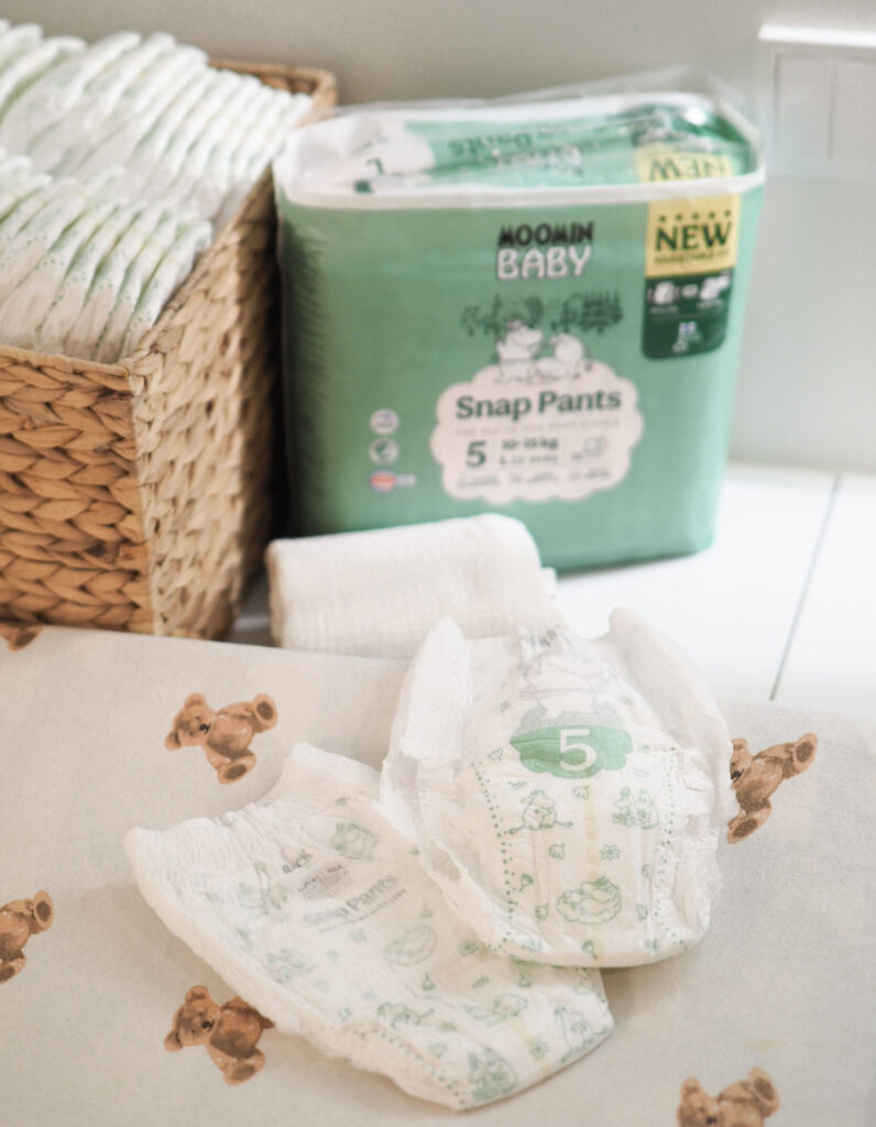 Me saimme testiin nyt uusia Moomin Baby snap pants -housuvaippoja ja nämä tuntuvat tosi hyviltä tällaisen kohtuullisen lyhyen käyttökokemuksen jälkeen. Omat lapset ovat olleet aina hoikkia ja erityisesti on ollut haastavaa löytää riittävän imukykyistä vaippaa öitä varten niin että se ei kuitenkaan olisi liian iso hoikalle lapselle. Aivan liian usein on ollut tilanteita, että sitten kuitenkin mennyt ohi ja patja ollut yöllä märkä, kun vaippa ei olekaan istunut lapselle. Näiden kanssa sitä ongelmaa ei ole, koska vaippaa pystyy hyvin säätämään, mutta se on kuitenkin housuvaippa.