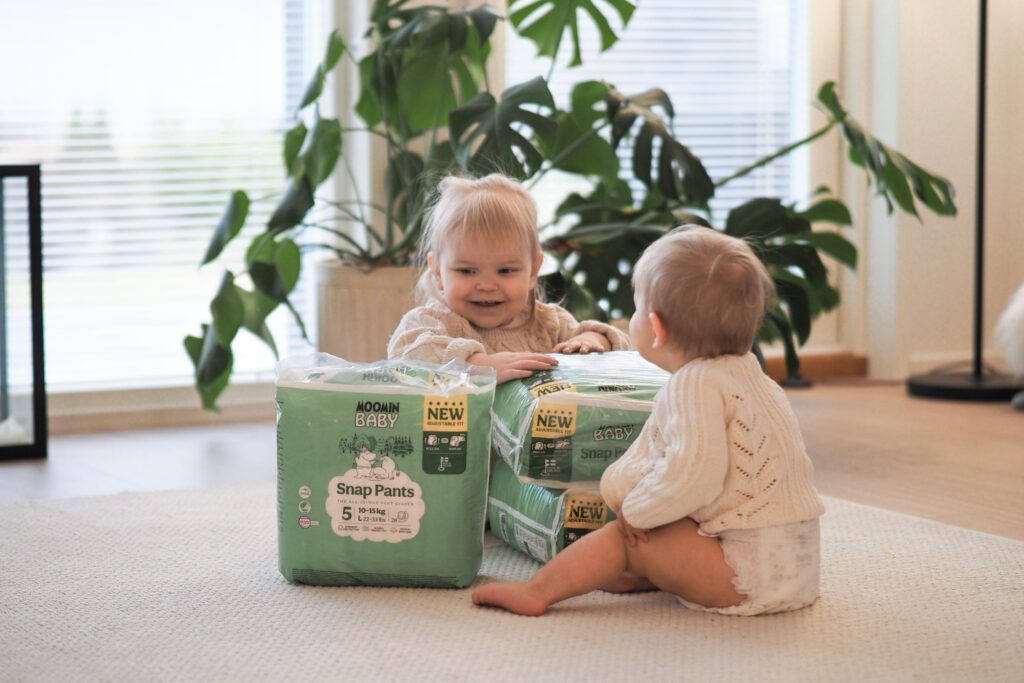 Me saimme testiin nyt uusia Moomin Baby snap pants -housuvaippoja ja nämä tuntuvat tosi hyviltä tällaisen kohtuullisen lyhyen käyttökokemuksen jälkeen. Omat lapset ovat olleet aina hoikkia ja erityisesti on ollut haastavaa löytää riittävän imukykyistä vaippaa öitä varten niin että se ei kuitenkaan olisi liian iso hoikalle lapselle. Aivan liian usein on ollut tilanteita, että sitten kuitenkin mennyt ohi ja patja ollut yöllä märkä, kun vaippa ei olekaan istunut lapselle. Näiden kanssa sitä ongelmaa ei ole, koska vaippaa pystyy hyvin säätämään, mutta se on kuitenkin housuvaippa.